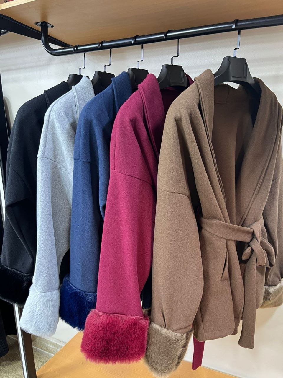 Wool coat with fur