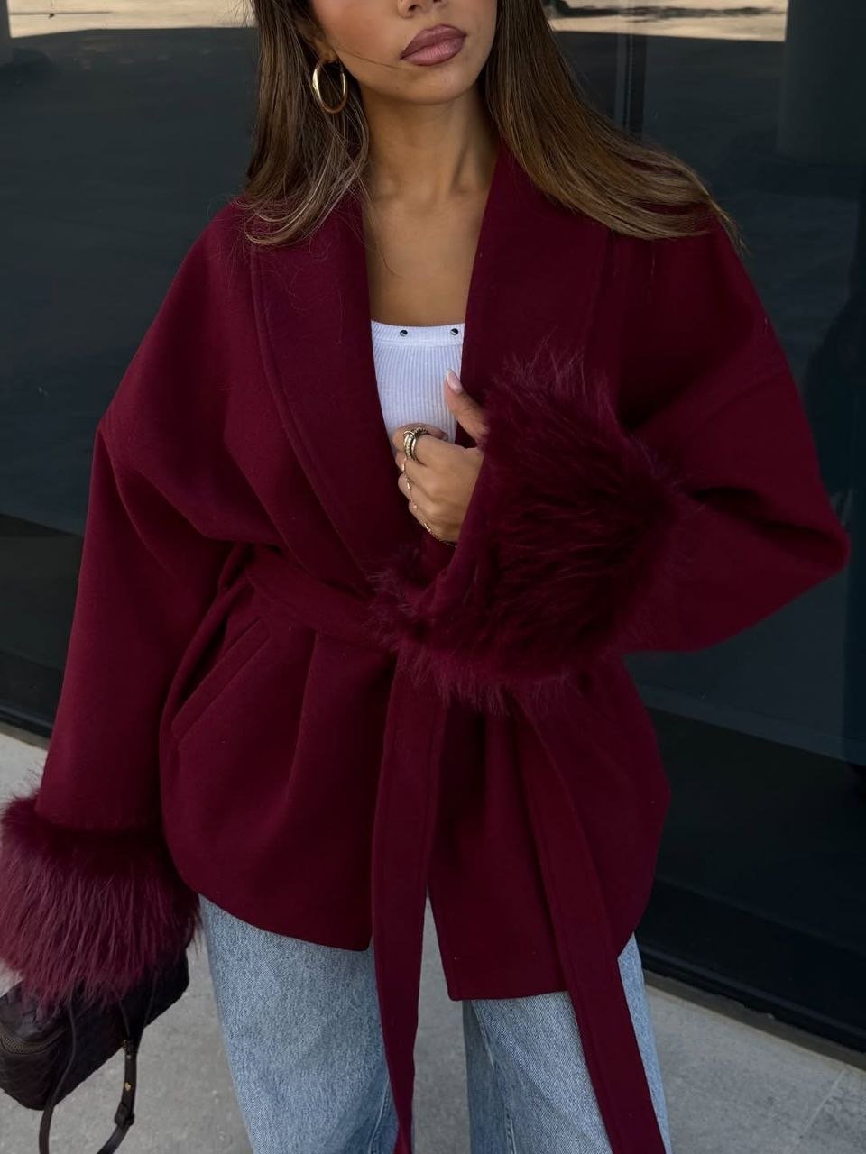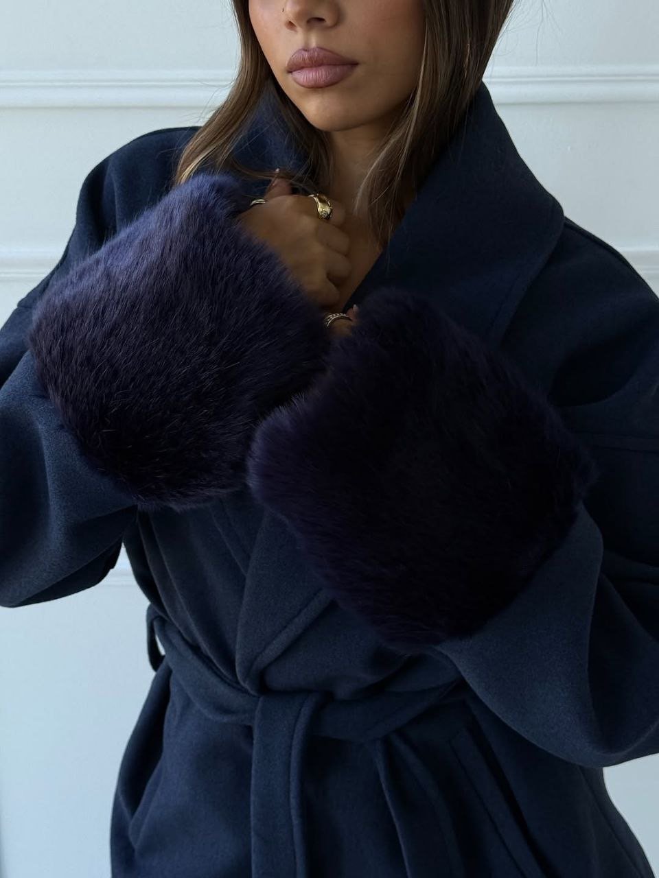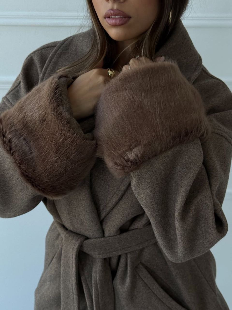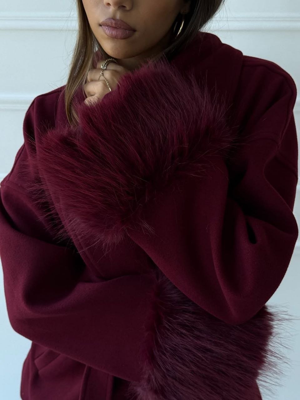 Wool coat with fur