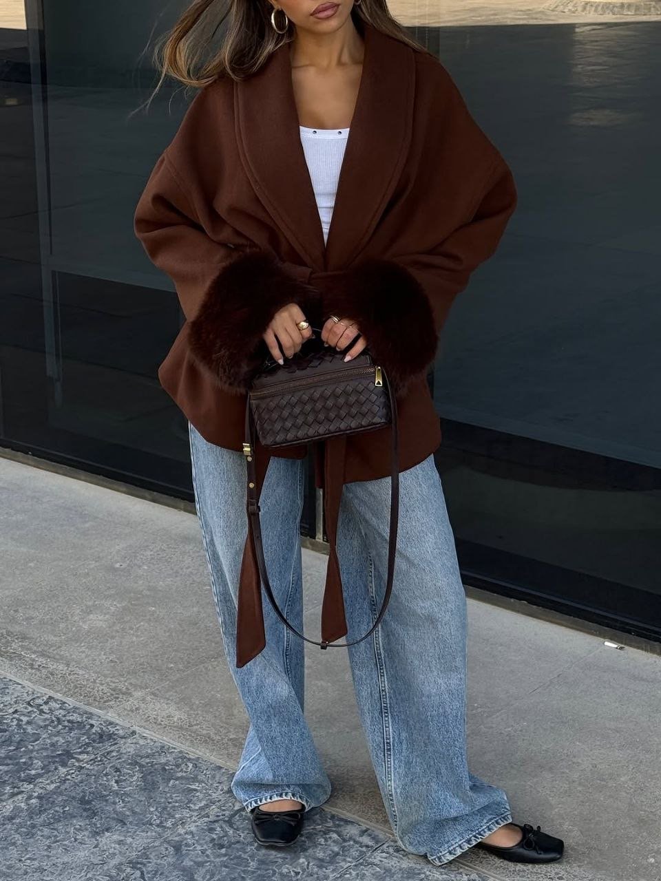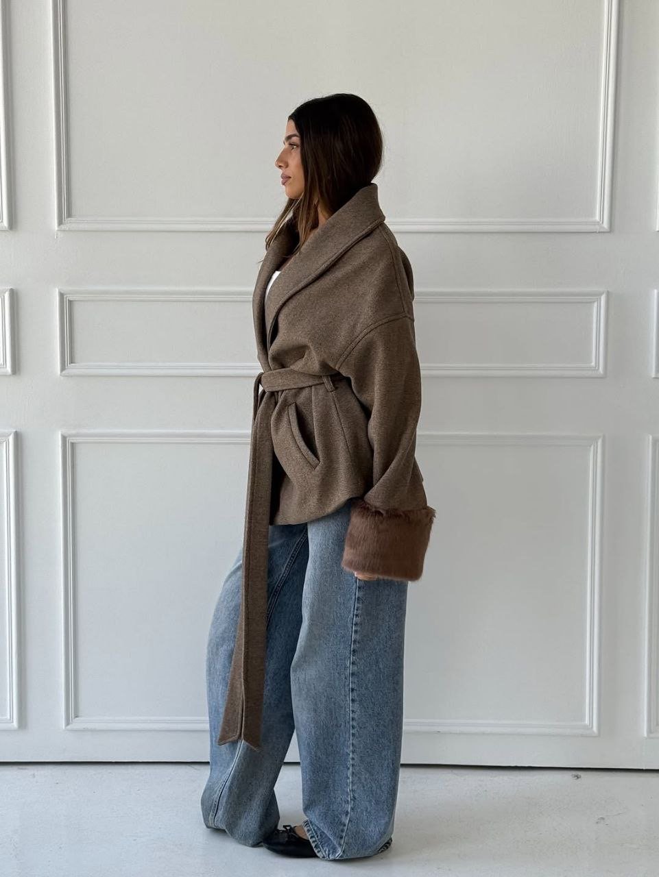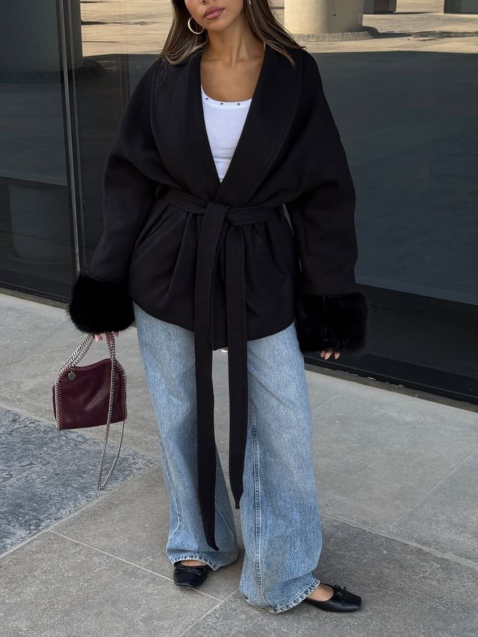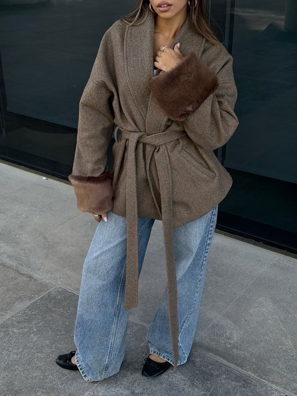 Wool coat with fur
